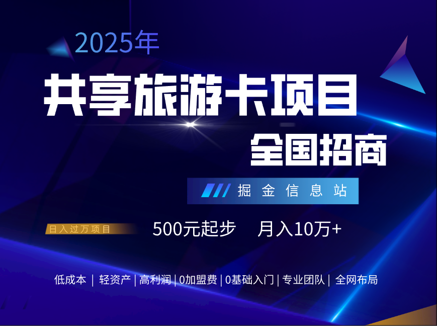 [赚钱项目] 2024火爆旅游卡项目,日赚1000+,一手政策置顶,无加盟费,包落地盈利
