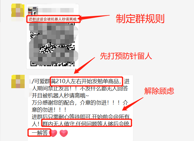 进群后,他已经先把群设置好,群名称讲规则,后面打预防针,这样来留人在社群。